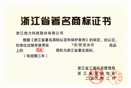 佳力再獲浙江省著名商標(biāo)延續(xù)認(rèn)定
