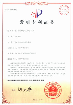 近日,佳力科技獲得兩項國家發(fā)明專利授權(quán),分別為“全液壓電動叉車液壓系統(tǒng)”專利號:ZL200610050420.6和“全液壓電動叉車電氣系統(tǒng)” 專利號:ZL200610050421.0。作為國內(nèi)防爆叉車技術(shù)的龍頭企業(yè),公司不僅通過自主創(chuàng)新研發(fā)獲得了一系列成果和榮譽,而且每一項科技成果均達到了國際先進水平,填補了國內(nèi)技術(shù)空白,為民族產(chǎn)業(yè)的發(fā)展做出了貢獻。