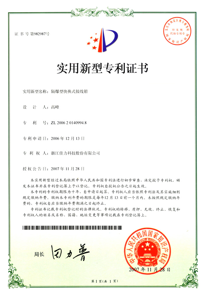 技術(shù)發(fā)明專利證書